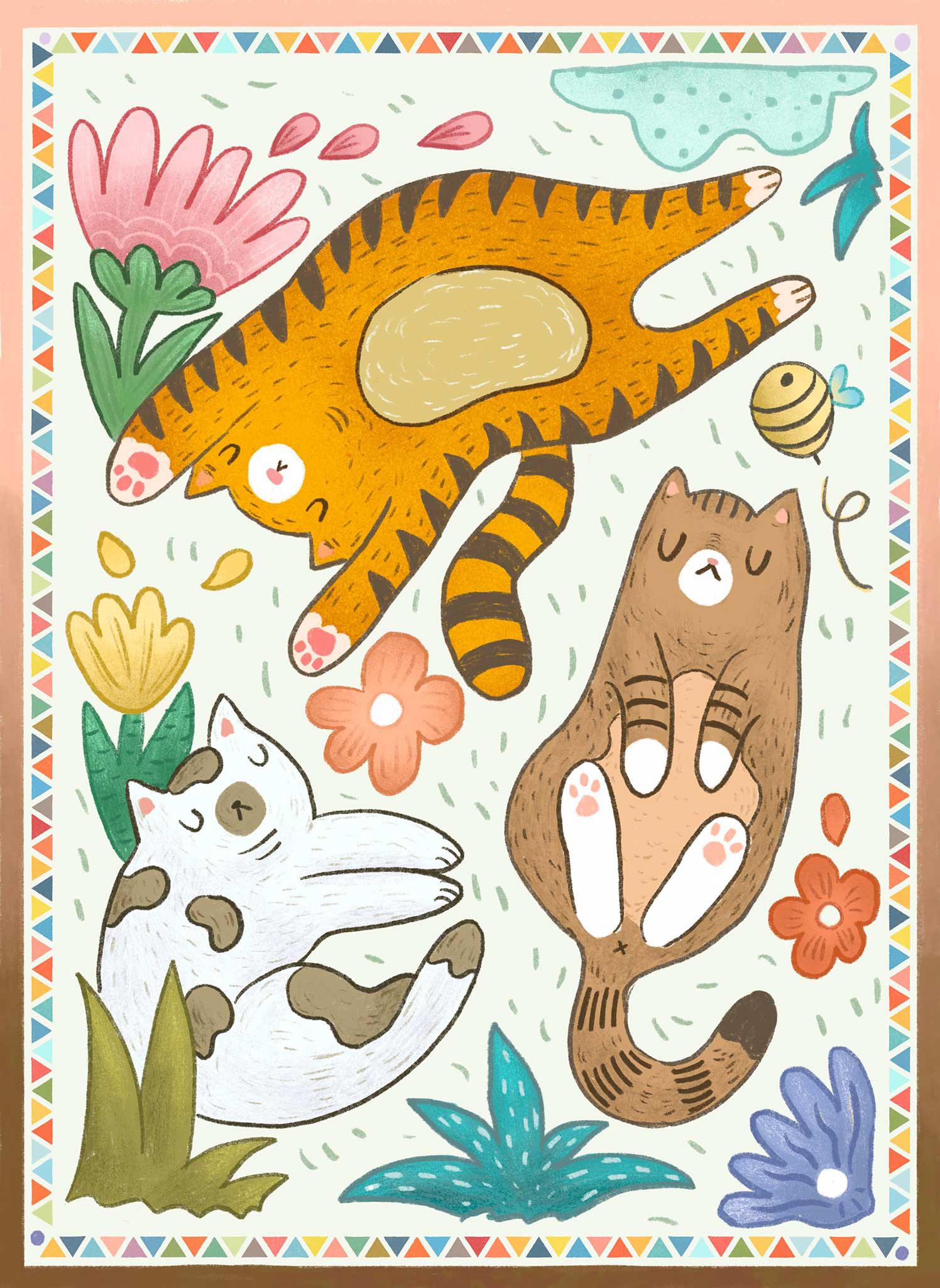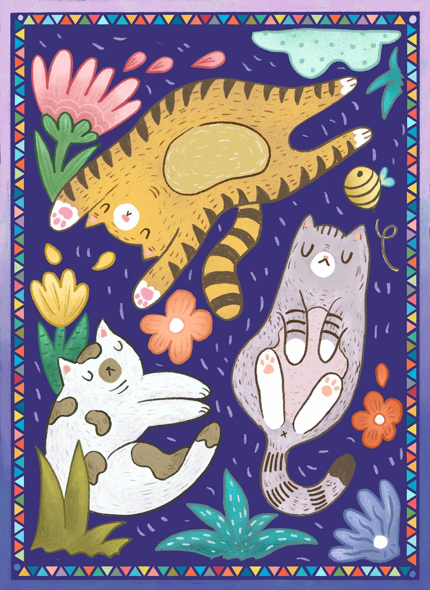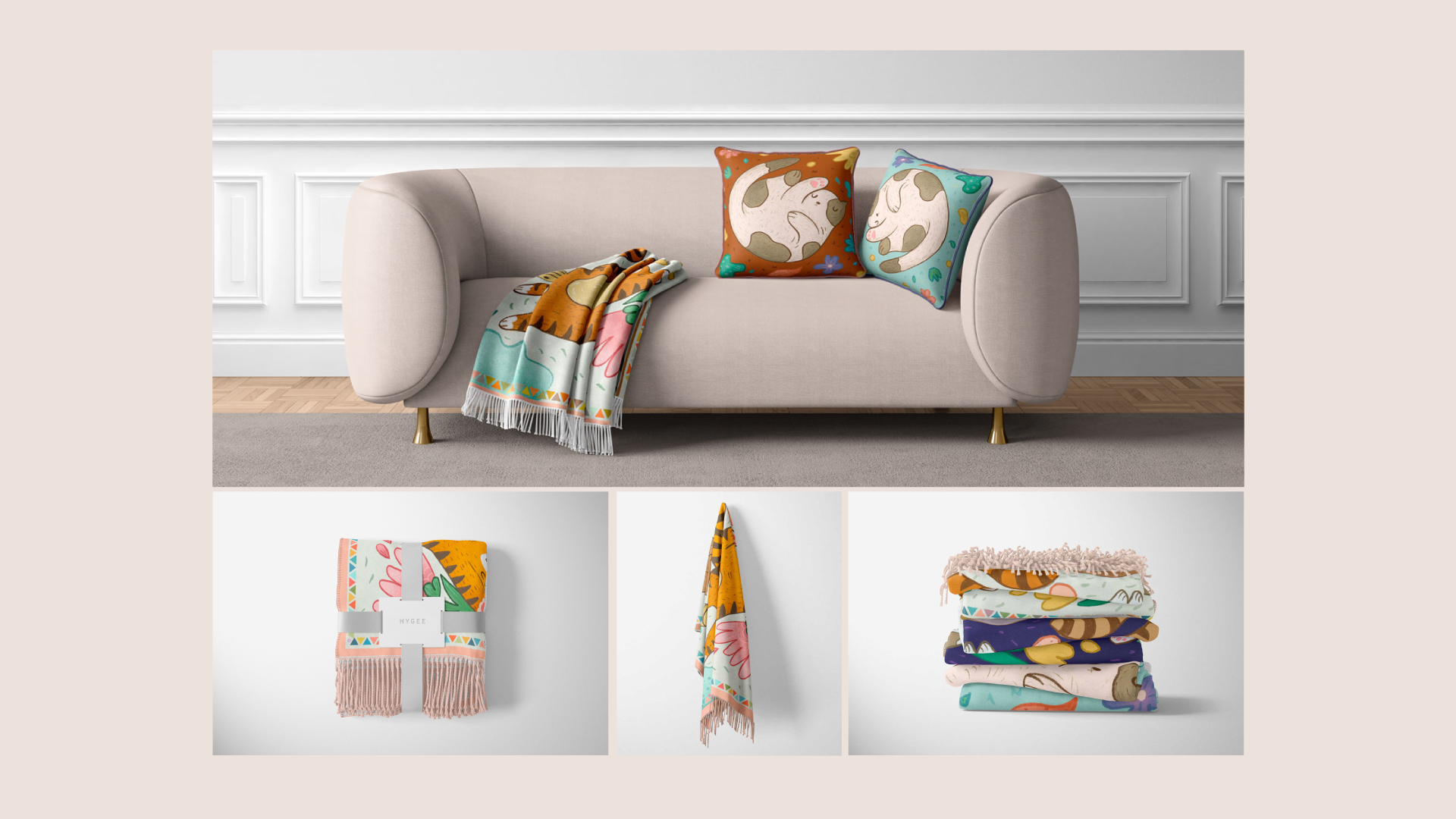 Cozy blanket design featuring a warm, playful pattern that captures the comfort of curling up with a sleepy cat.