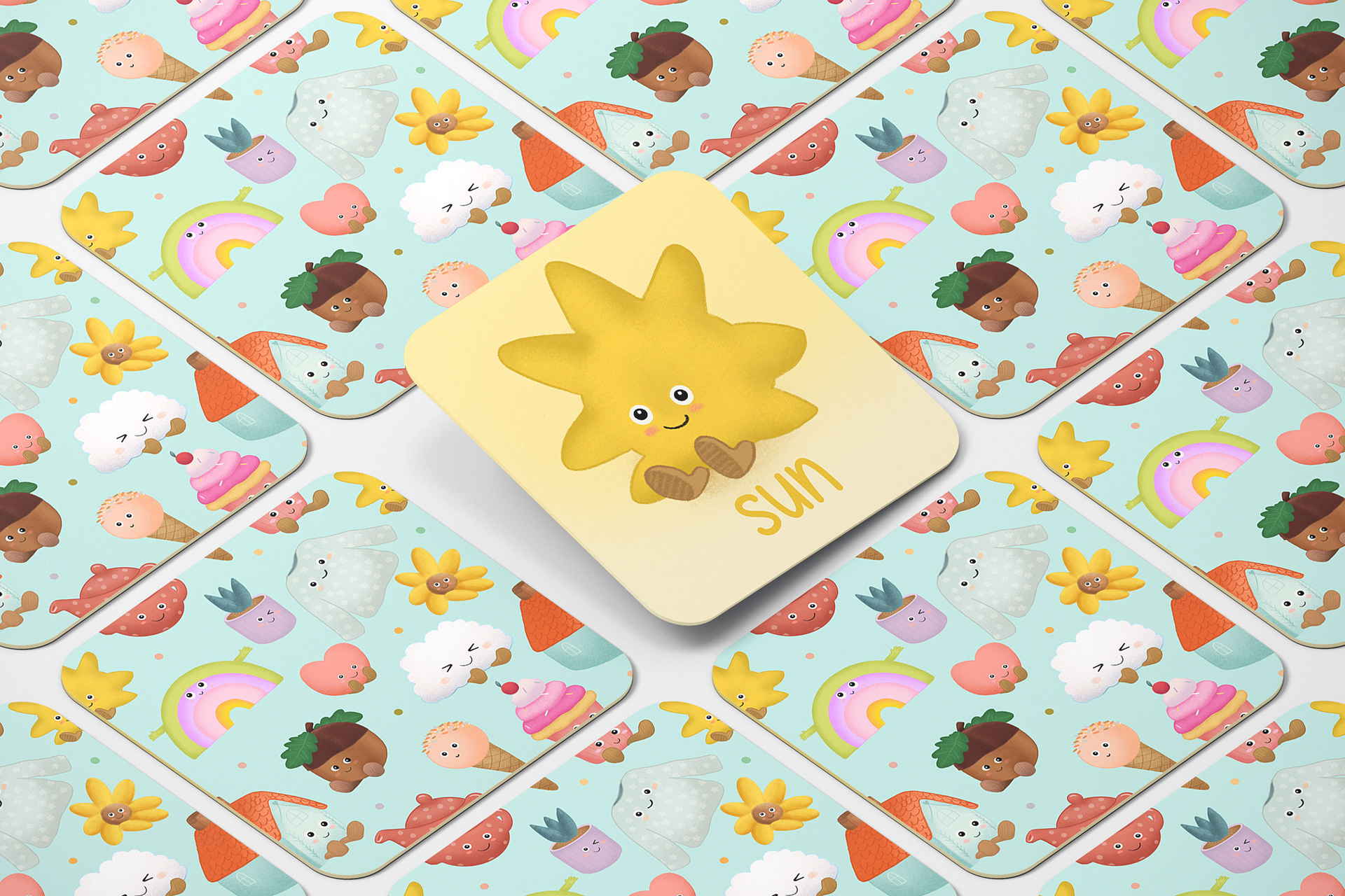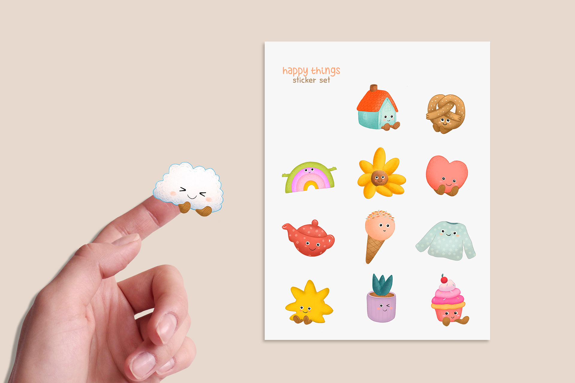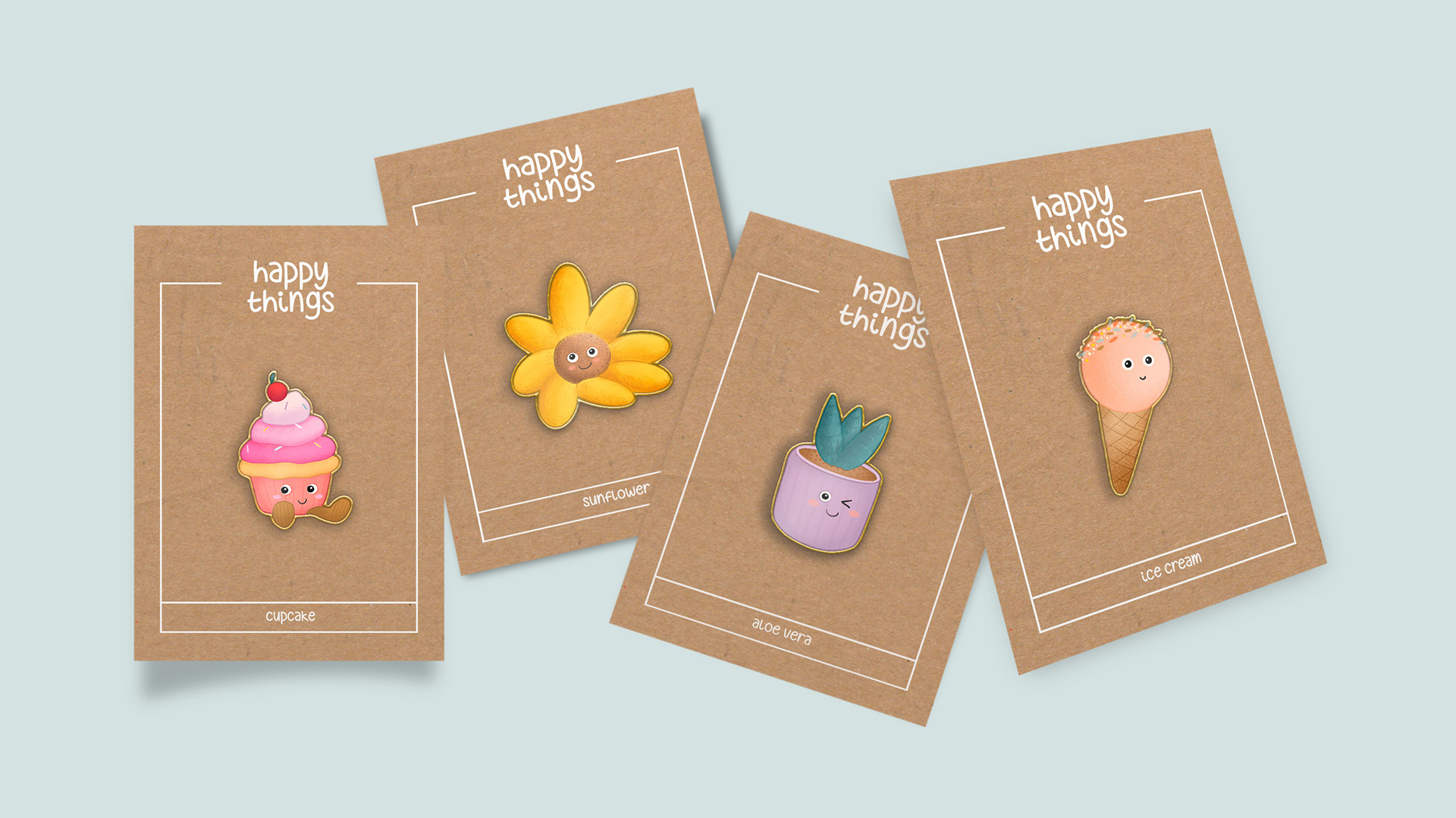 "Happy Things" is a charming stationery project where I created adorable characters and a pattern for memory cards.