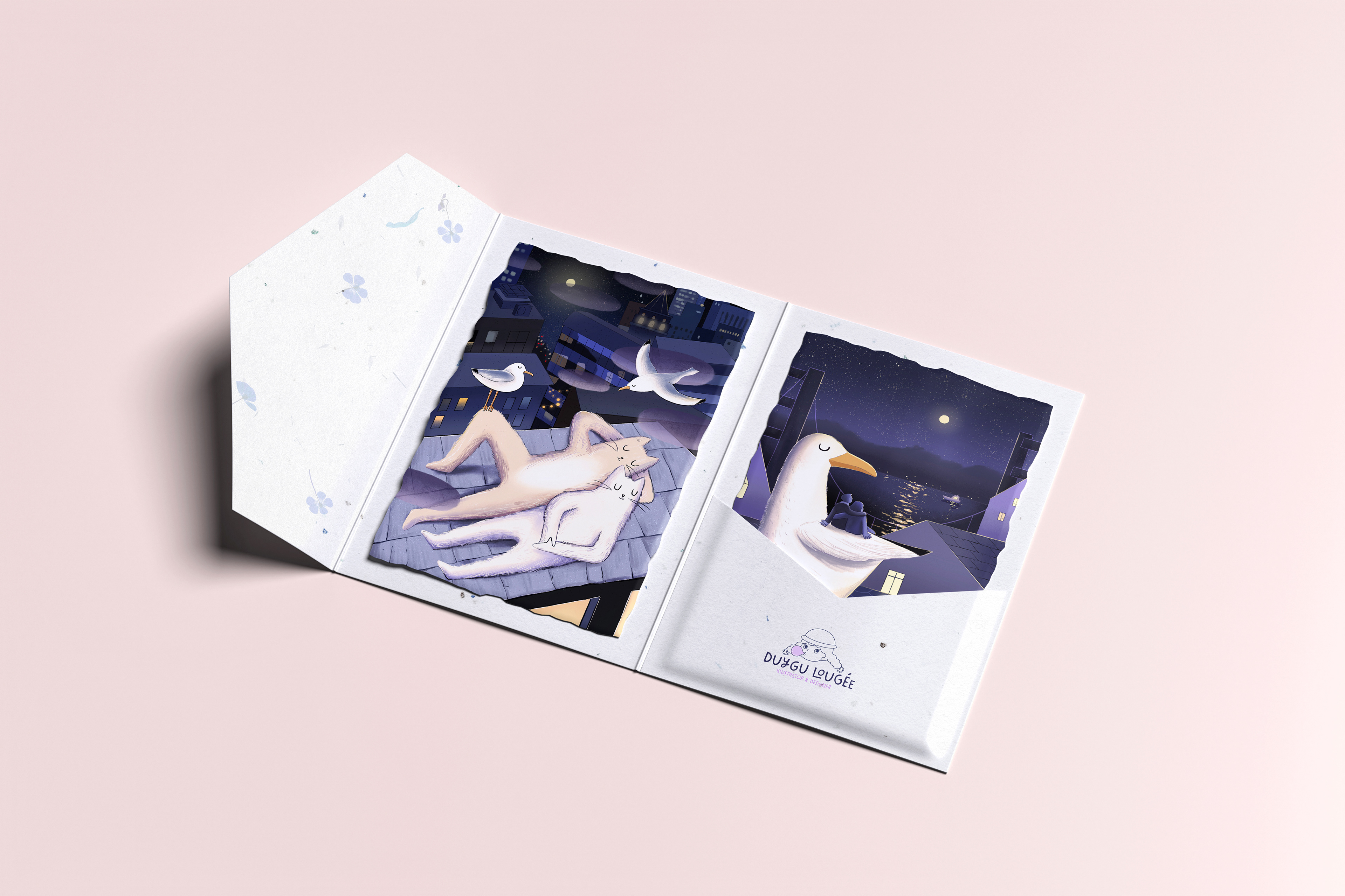 A series of illustrated postcards capturing quiet moments above the rooftops of Istanbul.
